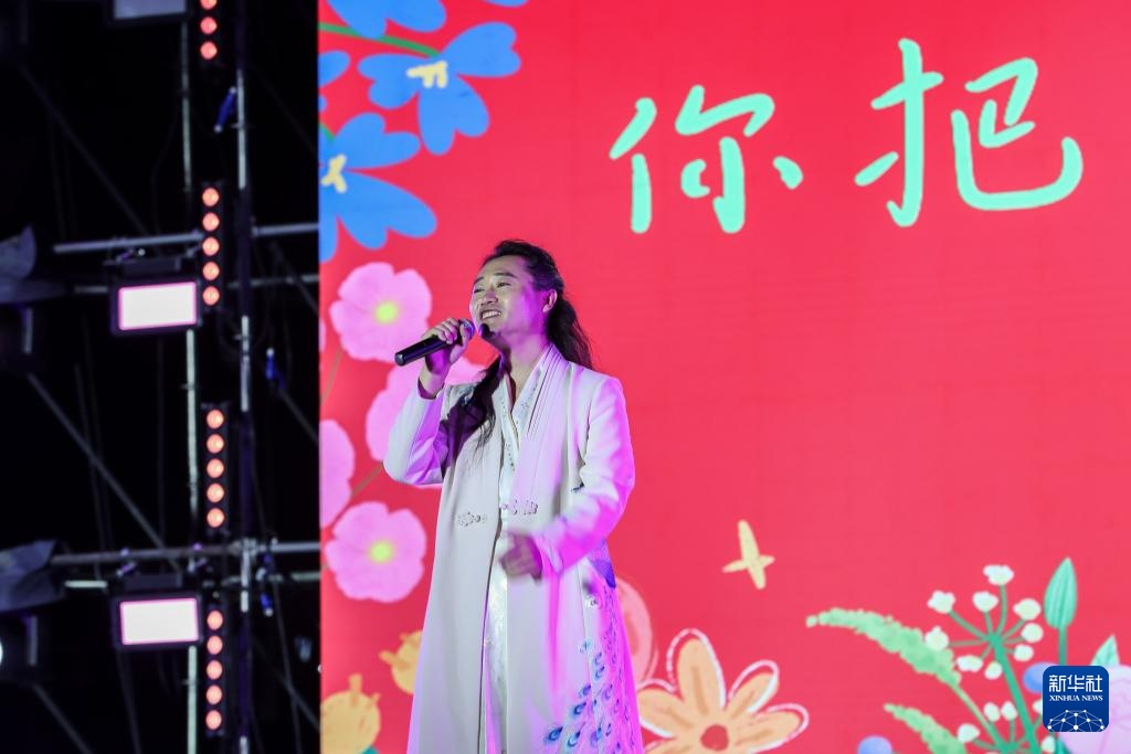 6月10日,在甘肃省定西市岷县拍摄的2025年岷县“花儿”艺术月暨文旅推介大会开幕式上,音乐人段兴华演唱带有浓郁“花儿”风格的歌曲《尕联手》。近年来,一批吸收借鉴“花儿”元素改编的歌曲备受年轻人喜爱,拓展了“花儿”的影响力。