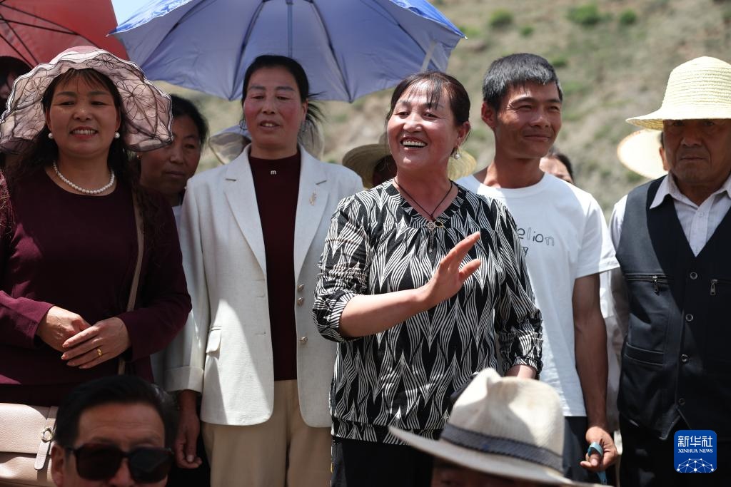 6月10日,在甘肃省定西市岷县洮河边的一场“花儿会”上,岷县寺沟镇巴仁村村民袁虎珍(中)在唱“花儿”。