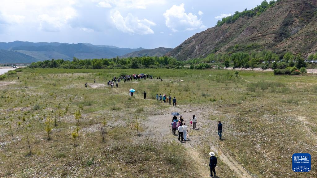 6月10日,人们到甘肃省定西市岷县清水镇参加农历五月十五“麻石头花儿会”(无人机照片)。