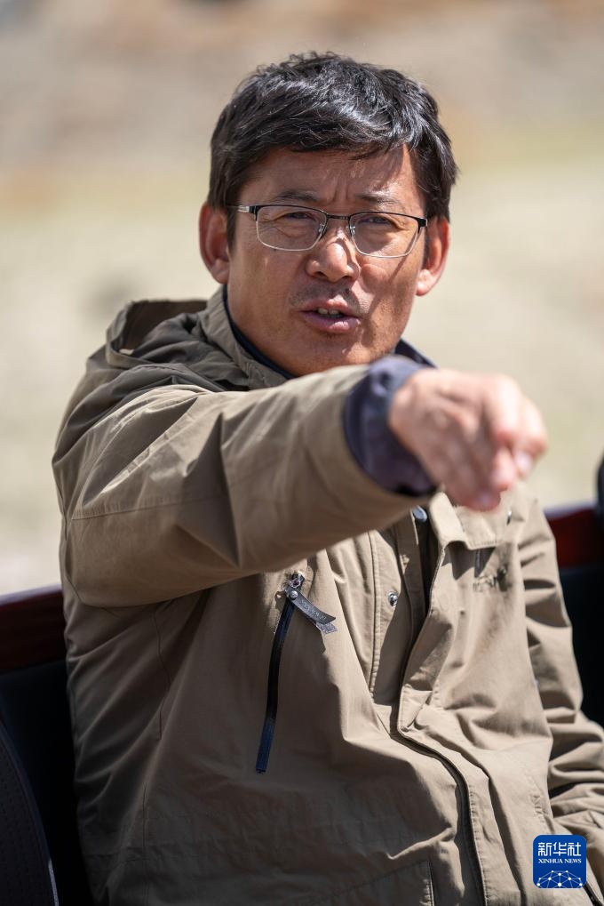 5月22日,联合考古队领队夏格旺堆在玛不错遗址向记者介绍考古发掘情况。