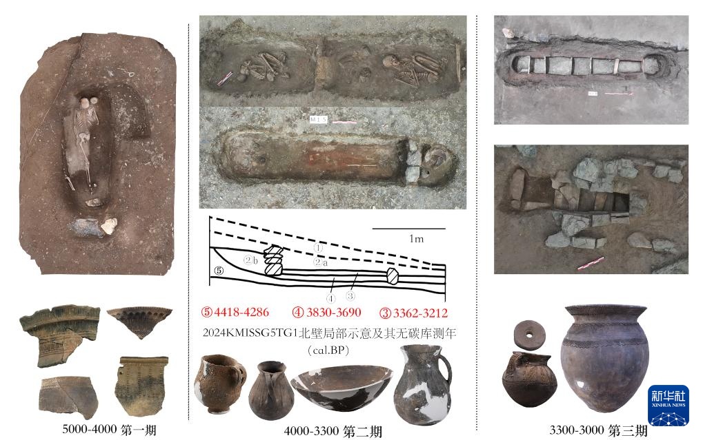 这是玛不错遗址各期典型墓葬和陶器特征。