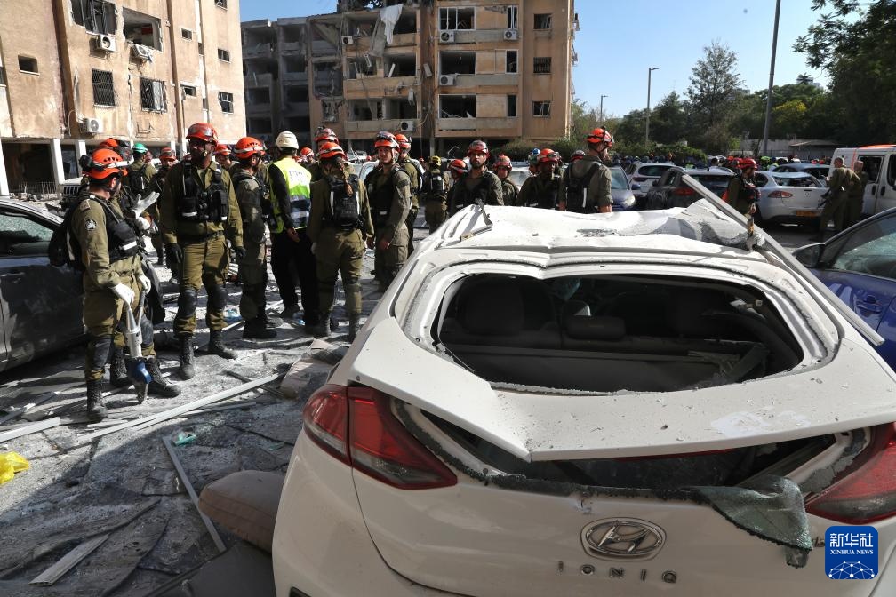 6月19日,应急和救援人员在以色列中部霍隆的导弹袭击现场开展工作。
