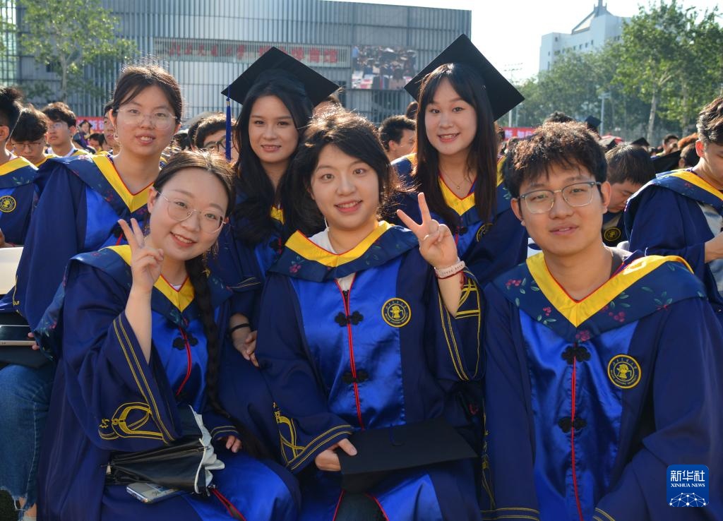 6月20日,毕业生在北京交通大学2025年毕业典礼暨学位授予仪式现场拍照留念。
