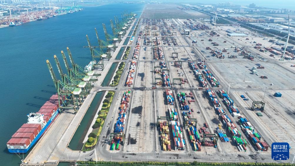 这是6月20日拍摄的天津自贸区天津港东疆片区码头(无人机照片)。