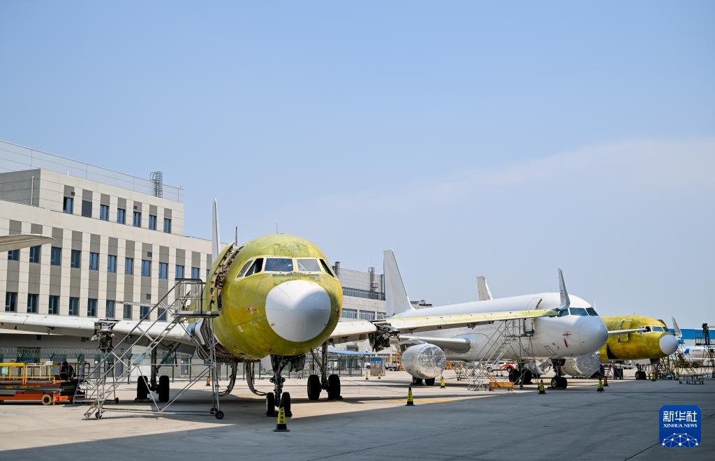 6月18日,在天津自由贸易试验区天津机场片区内的天津海特飞机工程有限公司,工作人员在停机坪对飞机进行保税维修。