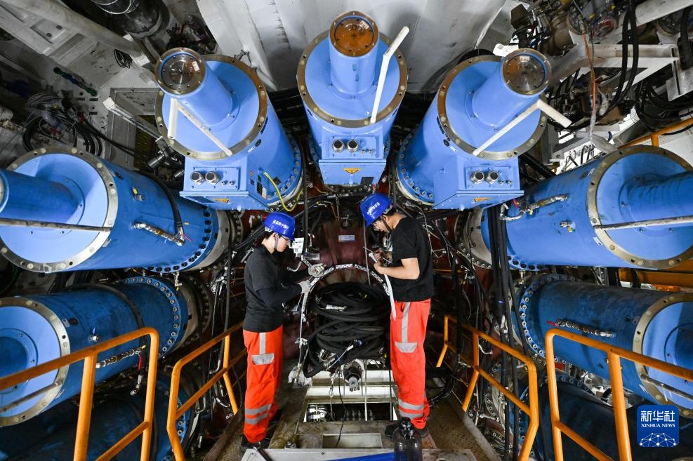 6月18日,在天津自由贸易试验区天津港东疆片区的中铁工程装备集团(天津)有限公司,组装人员在即将出口意大利的盾构机内作业。