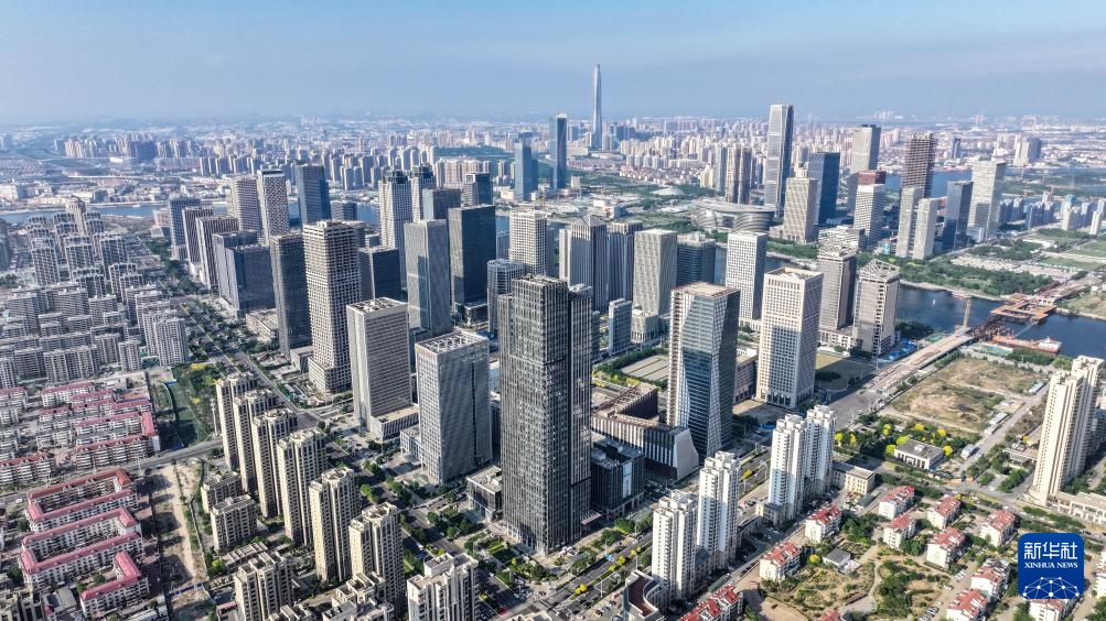 这是5月14日拍摄的天津自由贸易试验区中心商务片区的楼宇(无人机照片)。