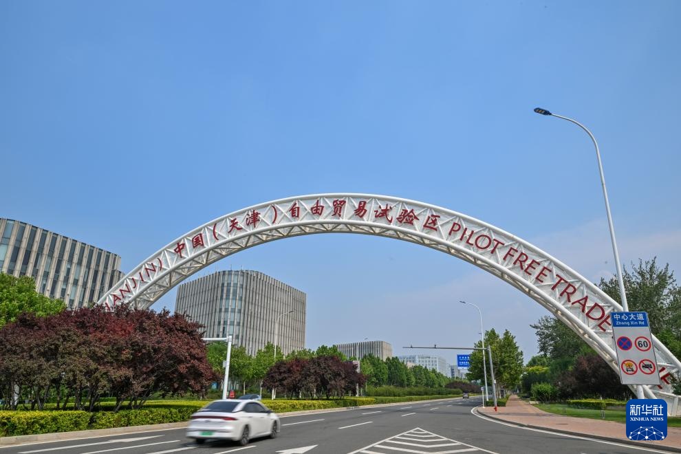 这是6月18日在天津自由贸易试验区天津机场片区入口处拍摄的中国(天津)自由贸易试验区拱门。