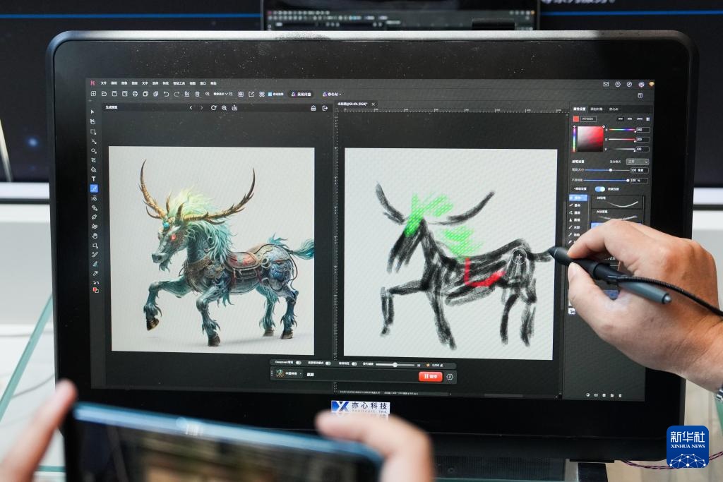 6月20日,在北京石景山区中关村科幻产业创新中心,工作人员展示悟空图像软件的AIGC功能。