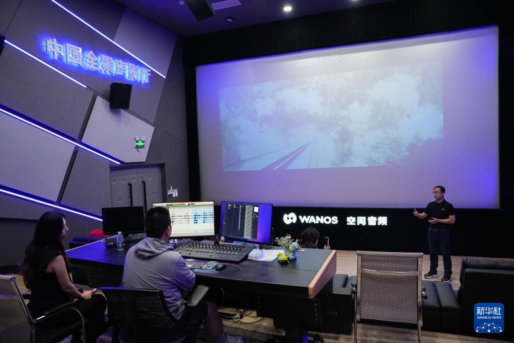 6月20日,工作人员在北京石景山区中关村科幻产业创新中心的中国全景声影厅展示音频技术。