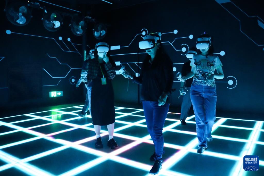 6月20日,记者在北京石景山区中关村科幻产业创新中心体验奇幻湃的科幻探索主题场景产品。