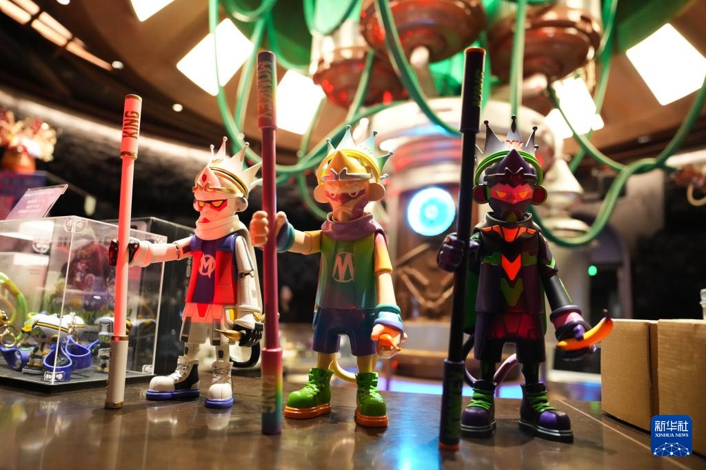 北京石景山区首钢园的一高炉SoReal科幻乐园“炉芯咖啡厅”展示的文创产品(6月20日摄)。