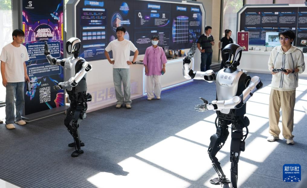 6月20日,乐聚机器人在北京石景山区中关村科幻产业创新中心表演“太极拳”。