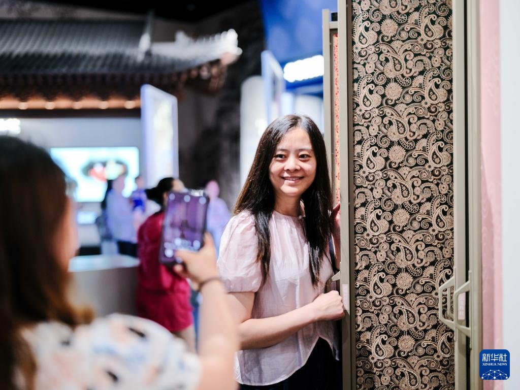 6月20日,在内蒙古博物院,观众与智能导览机器人互动。