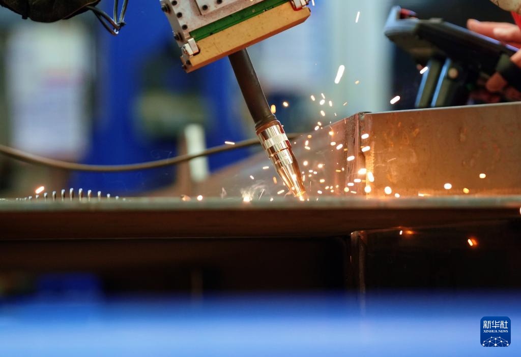 6月20日,在海油工程天津智能制造基地,一款新型机器人智能焊接系统进行焊接测试。