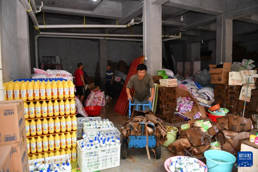 6月20日,龙山县商户在清理店内受损商品和垃圾。