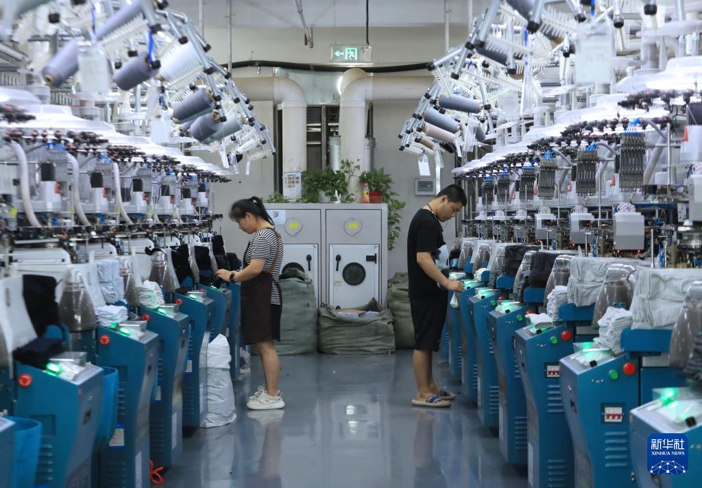 2025年6月20日,在辽阳县兴隆针织厂,工人在车间生产袜子。
