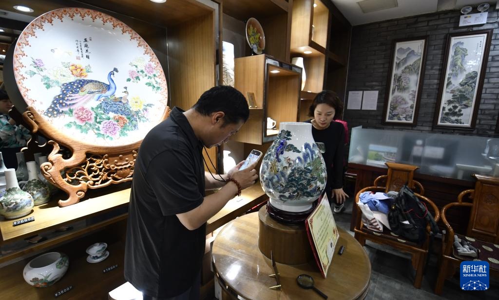 市民在京彩瓷博物馆内参观(6月18日摄)。