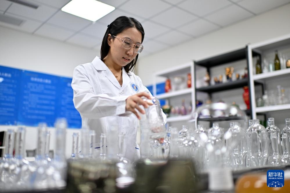 在位于山西省祁县的国家玻璃器皿产品质量监督检验中心,工作人员在整理样品(6月11日摄)。
