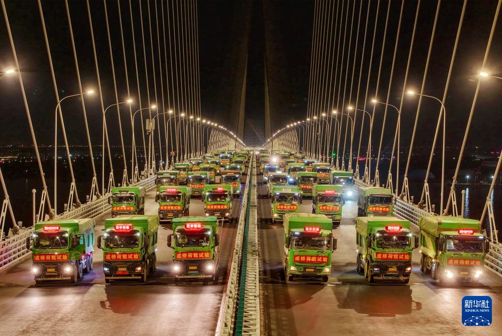 6月20日晚,常泰长江大桥主航道桥进行4400吨荷载试验,110辆重型卡车驶上主航道桥面,启动静态荷载试验。自6月16日起,常泰长江大桥开启为期一周的荷载试验,对大桥承载力和安全性进行全面评估。
