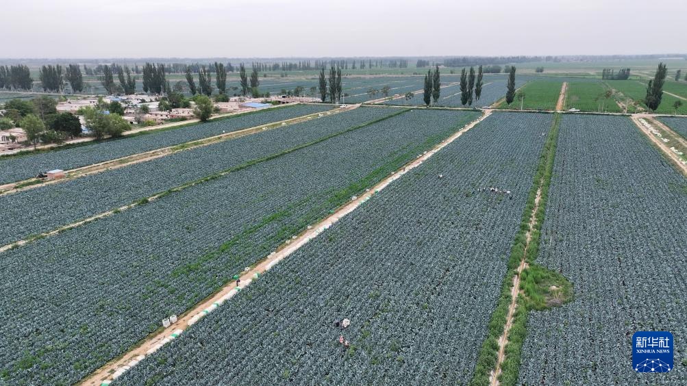6月20日,工人在位于银川市贺兰县立岗镇的供港蔬菜种植基地采摘菜心。