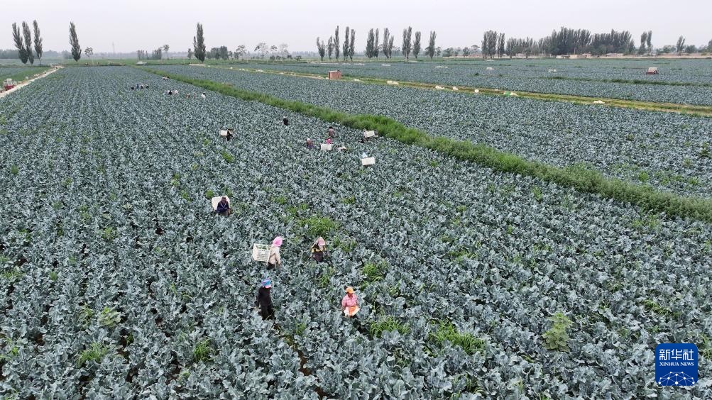 近日,宁夏各供港蔬菜基地迎来丰收季。在位于银川市贺兰县立岗镇的供港蔬菜种植基地里,采摘工忙碌在田间地头,采摘西兰花、芥蓝、菜心等蔬菜。