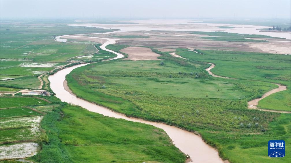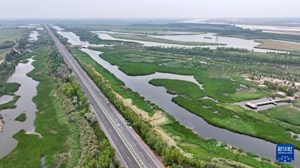 夏日,黄河宁夏段滩涂湿地绿意盎然,生机勃发,尽显生态之美。