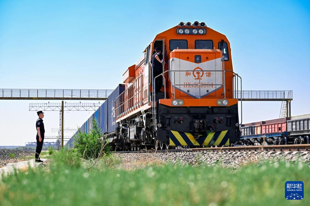 6月22日,一列中欧班列通过内蒙古二连浩特铁路口岸入境。