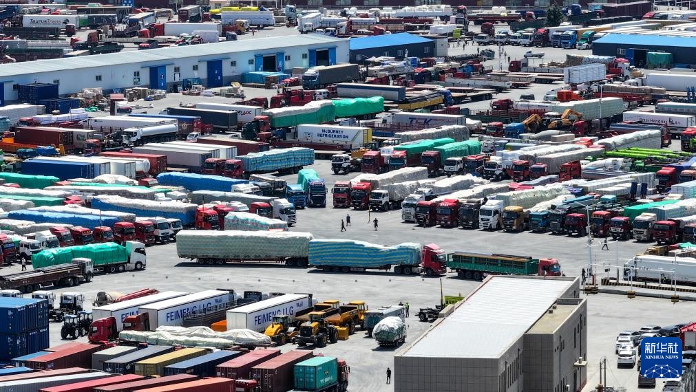 6月22日拍摄的内蒙古二连浩特公路口岸(无人机照片)。