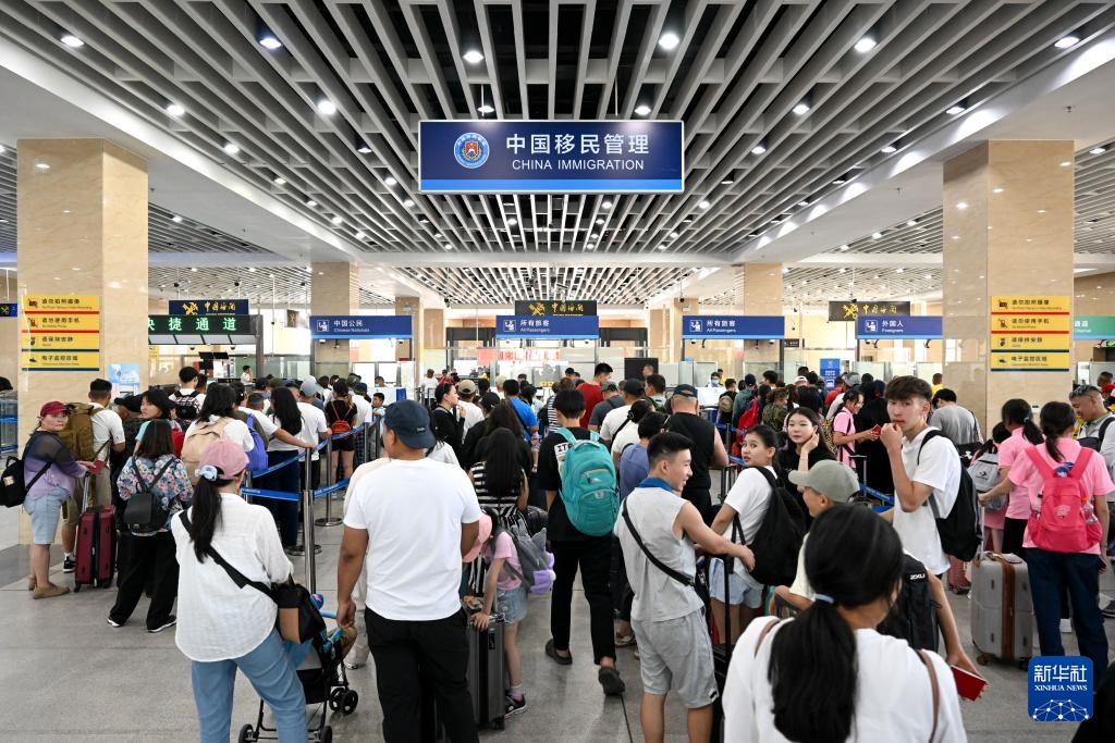 6月22日,旅客在内蒙古二连浩特公路口岸联检大厅办理入境手续。