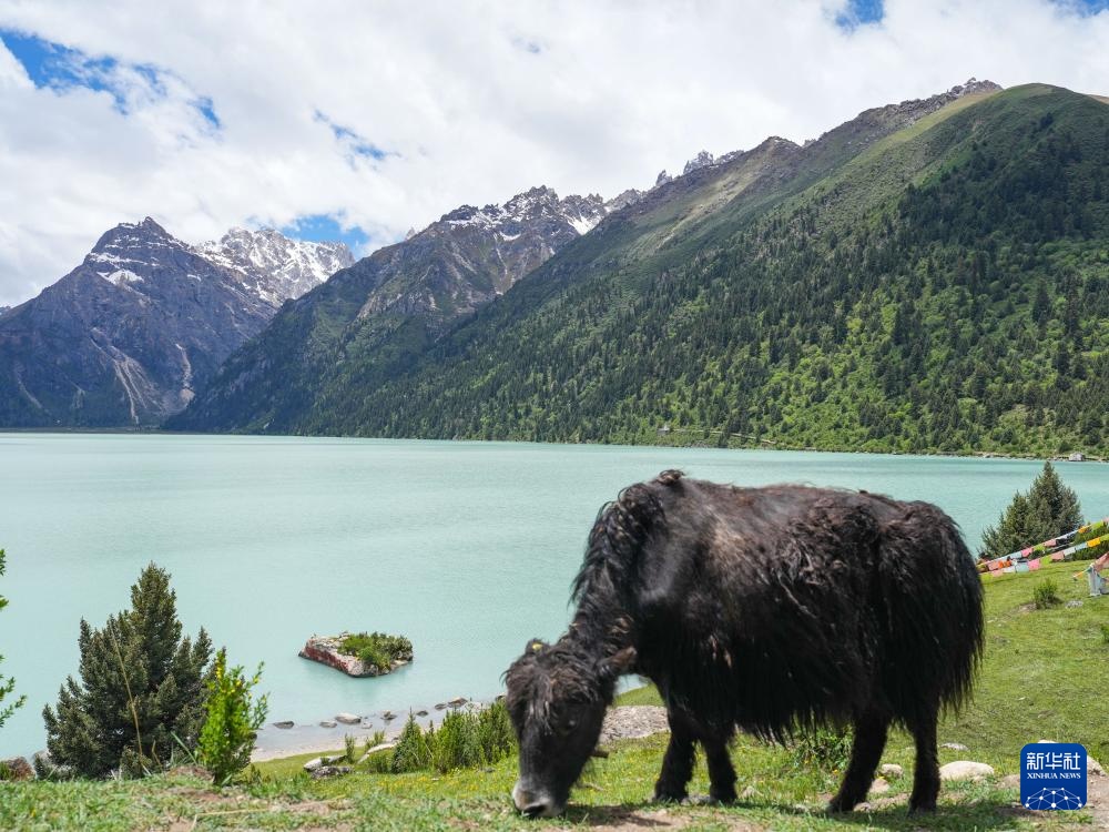 这是6月21日拍摄的玉龙拉措风光(无人机照片)。