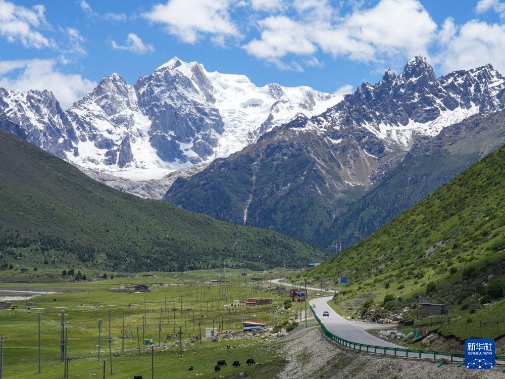 这是6月21日拍摄的雀儿山主峰(左)和国道317线。
