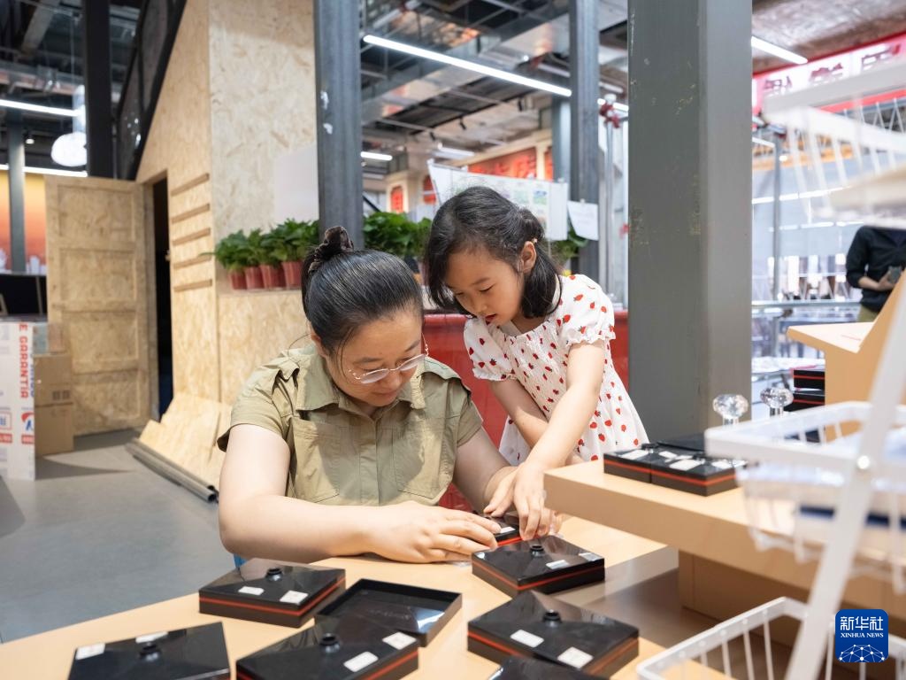 6月21日,游客在“包棉1958”主题文化街区盖章留念。