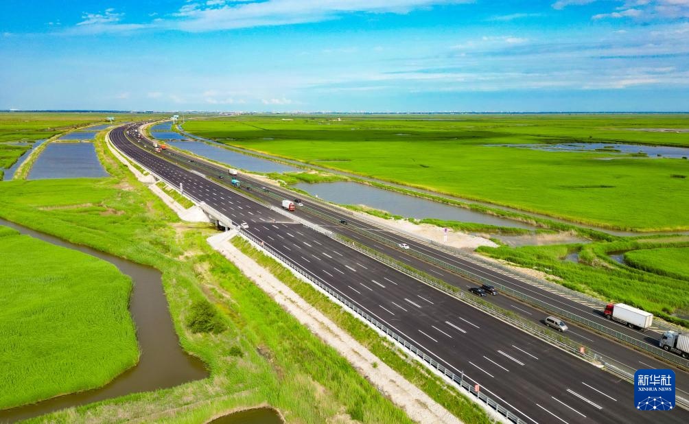 6月23日拍摄的已经完工的京哈高速盘锦段改扩建工程(无人机照片)。