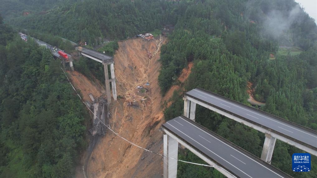 记者从贵州省政府了解到,6月24日7时40分许,G76厦蓉高速格都线广西至贵州都匀方向K1264处(贵州省三都县境内)猴子河特大桥,因持续强降雨诱发山体滑坡,导致引桥发生垮塌。