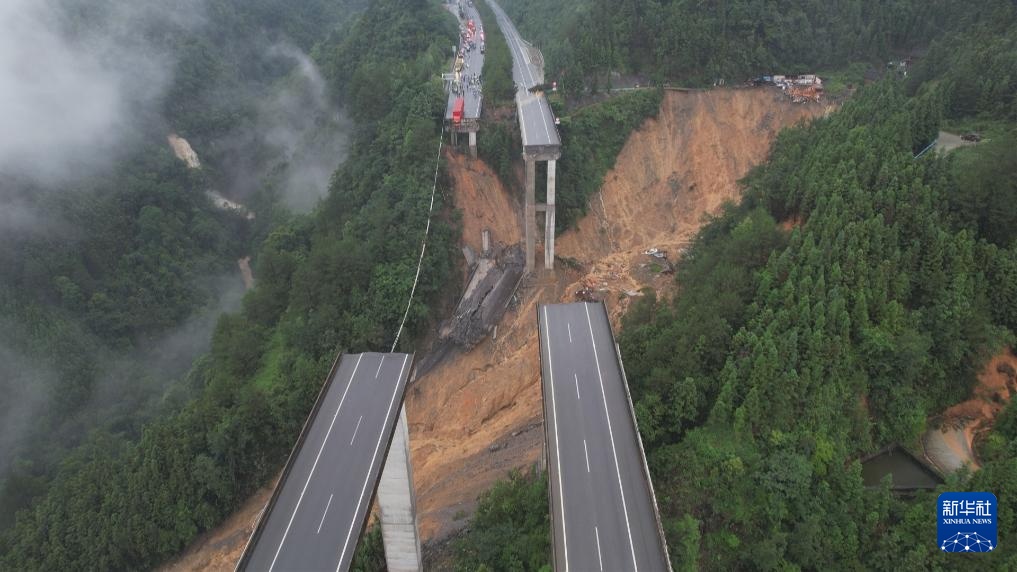 这是6月24日拍摄的垮塌后的厦蓉高速猴子河特大桥引桥(无人机照片)。