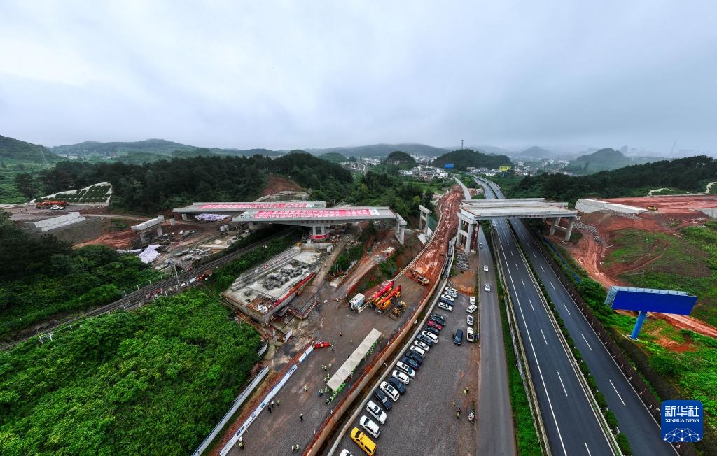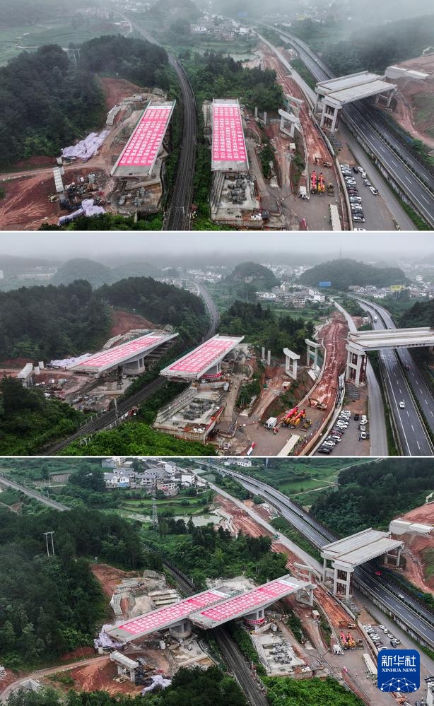 这是6月24日拍摄的贵州乌长高速公路高坝大桥转体现场(拼版照片)。