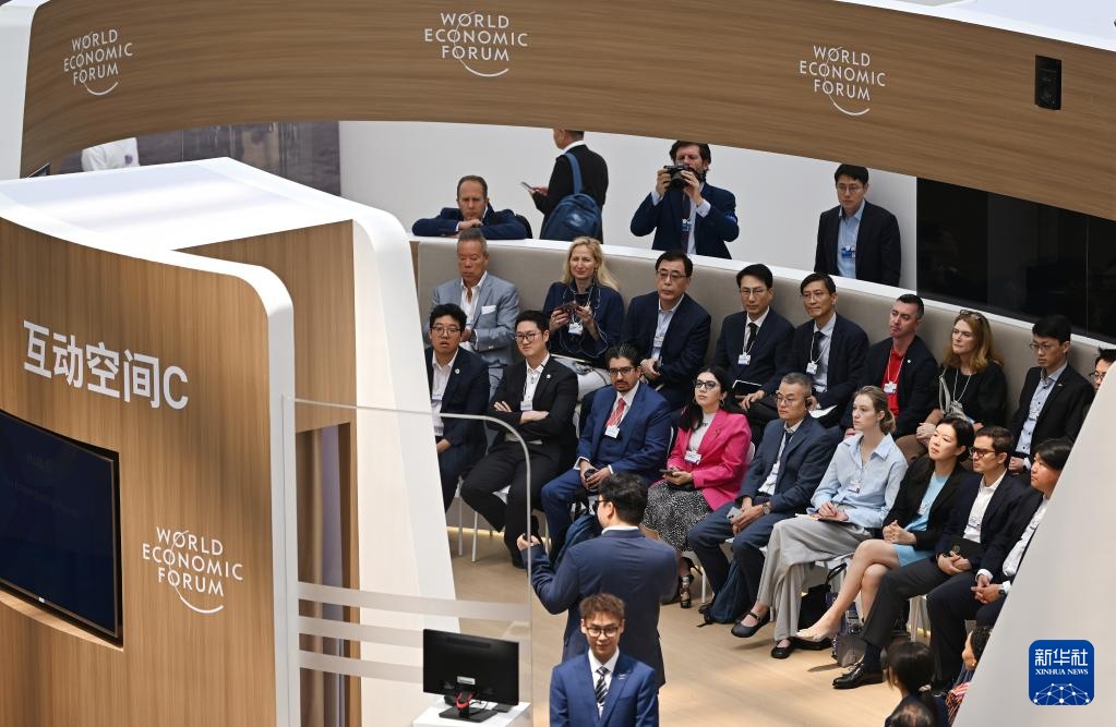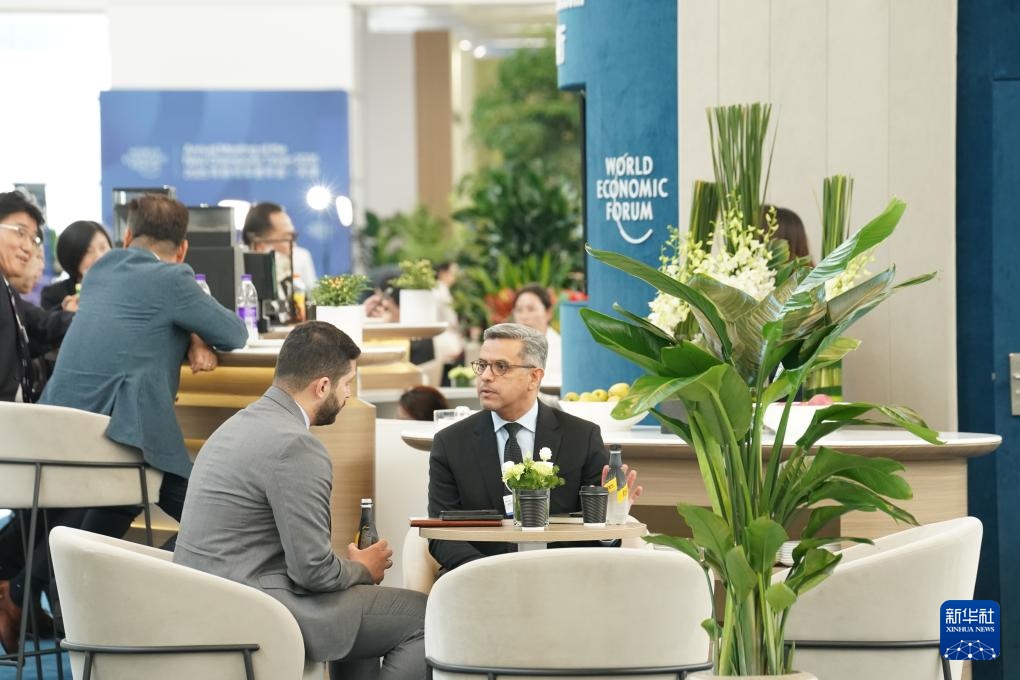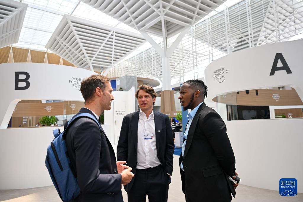 6月24日,在国家会展中心(天津),嘉宾在论坛设置的新领军者村内交流。