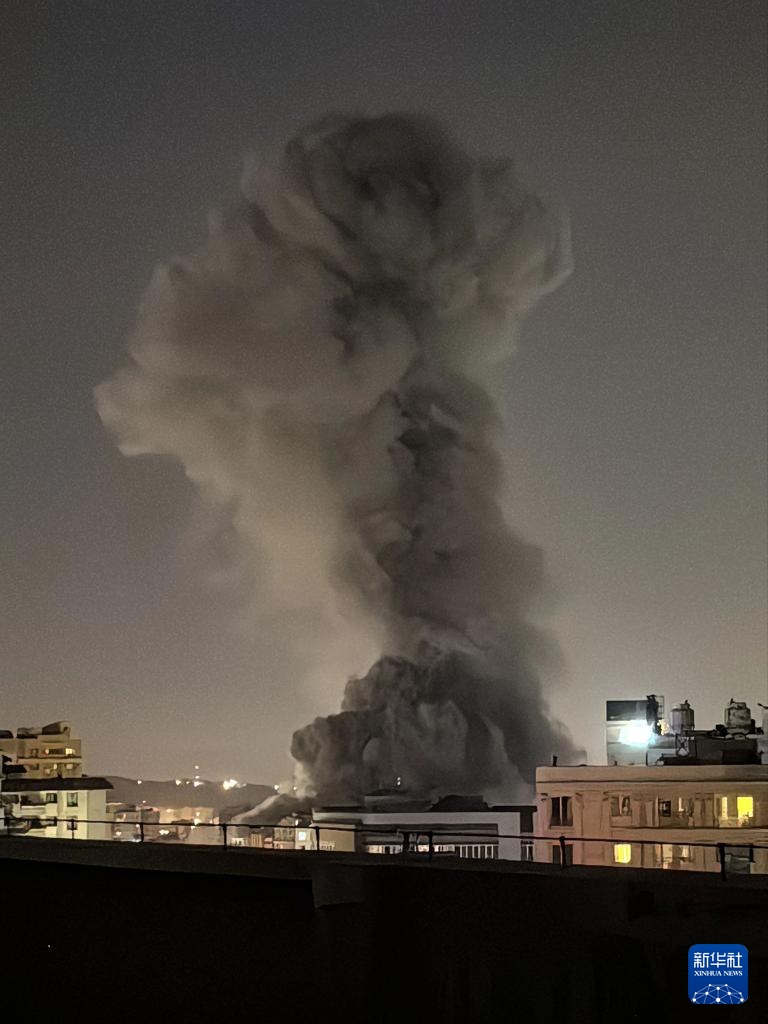 当地时间6月24日凌晨1时23分,位于德黑兰的伊朗国防部大楼附近,在遭袭后冒起滚滚浓烟。