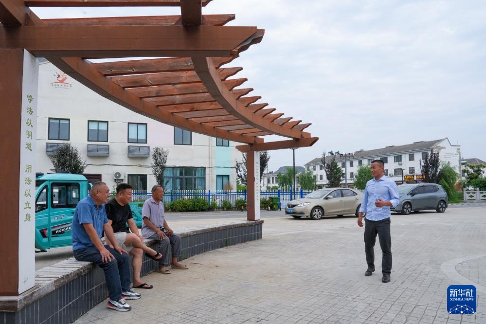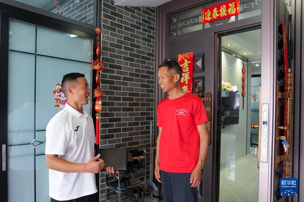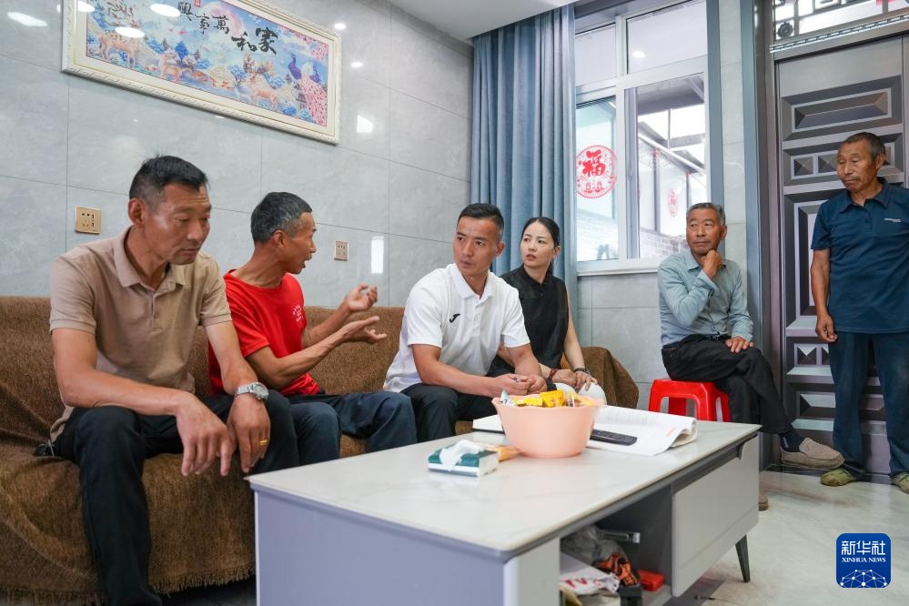 6月23日,戴虎(左)来到韩陈村村民皇星中家走访。