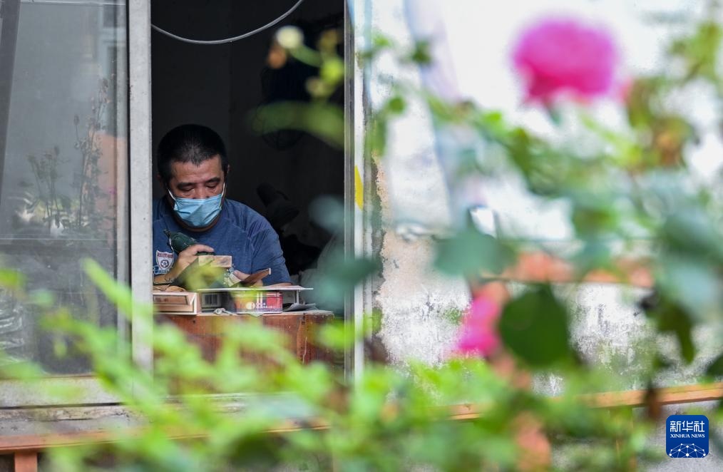6月16日,在荆州市公安县埠河镇,敖兴华在工作坊内忙碌。