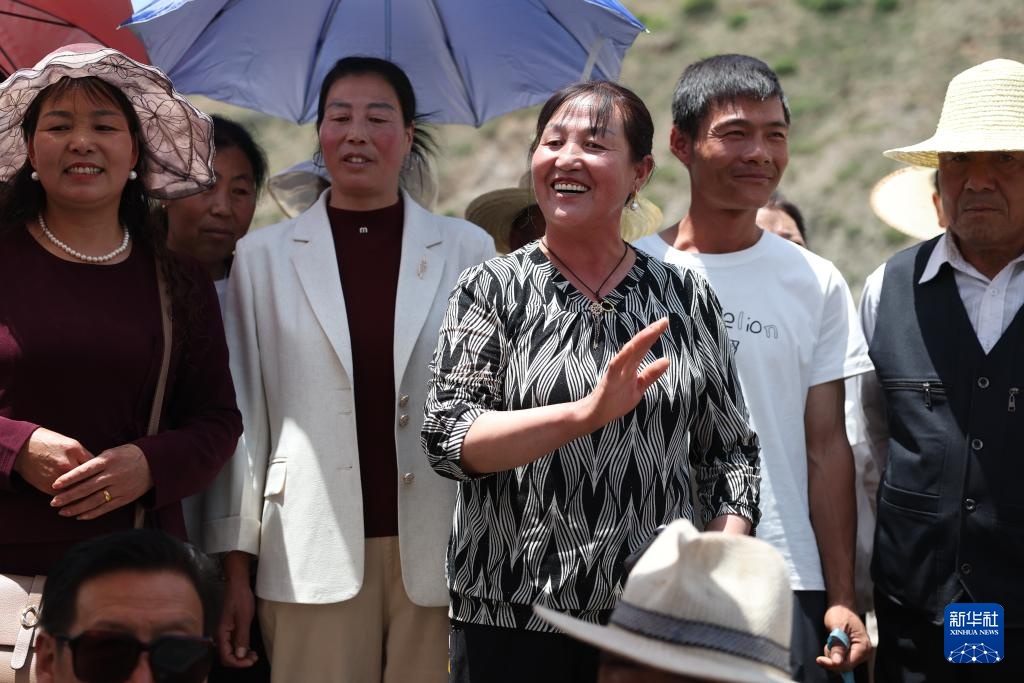 6月16日,在甘肃省定西市岷县西寨镇,当地群众参加“大庙滩花儿会”(无人机照片)。