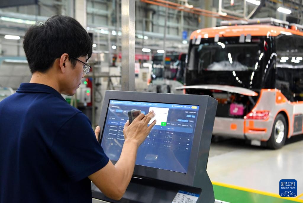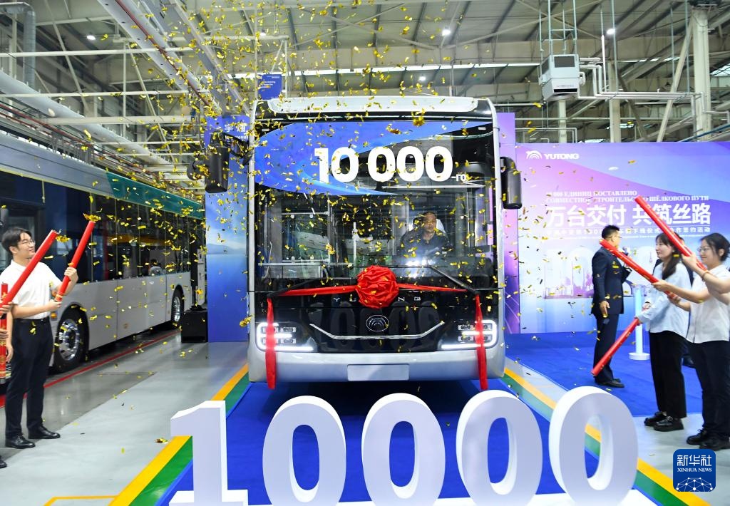 6月26日,宇通客车出口中亚地区的第10000台车辆在河南省郑州市宇通新能源厂区海外承装车间正式下线。