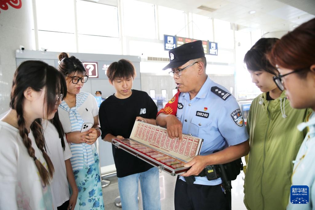 6月25日,徐州铁路公安处连云港东站民警在候车大厅向旅客宣传禁毒知识。