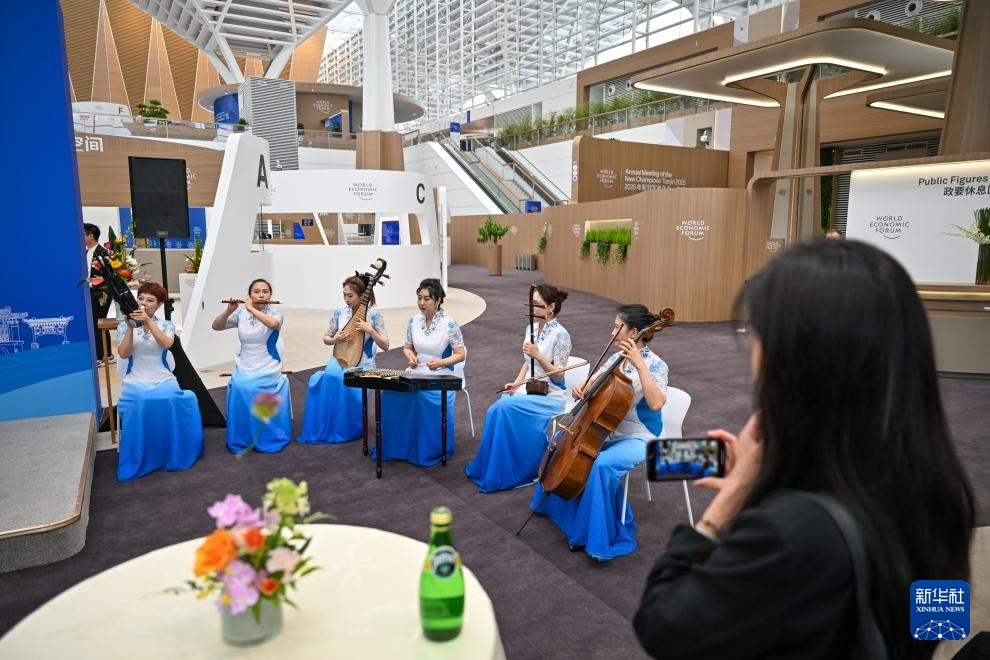 6月26日,在国家会展中心(天津),嘉宾在欢送招待会上欣赏文艺演出。