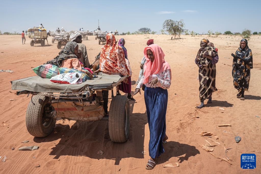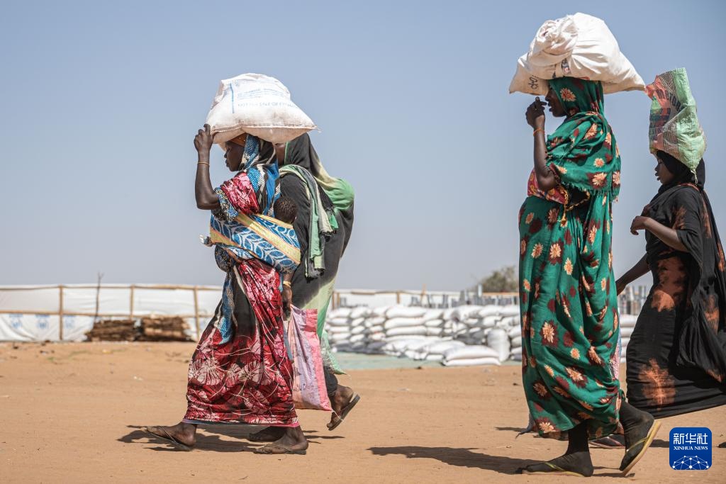 6月25日,苏丹难民在与苏丹西达尔富尔州接壤的乍得东部城镇阿德雷搬运食物。