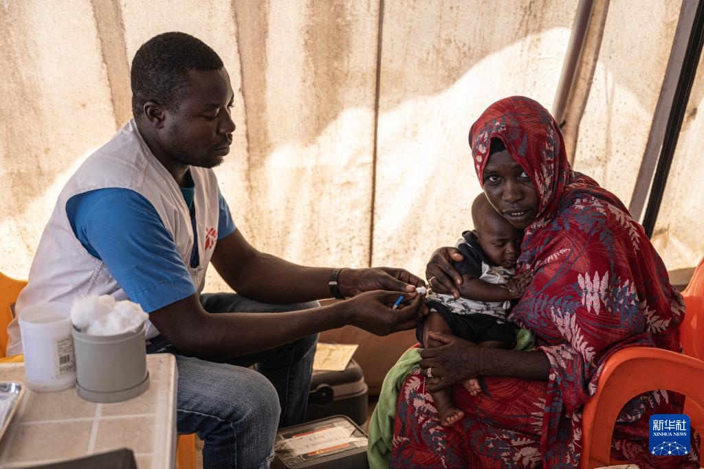 6月25日,在与苏丹西达尔富尔州接壤的乍得东部城镇阿德雷,一名苏丹儿童在一处诊所内接种疫苗。