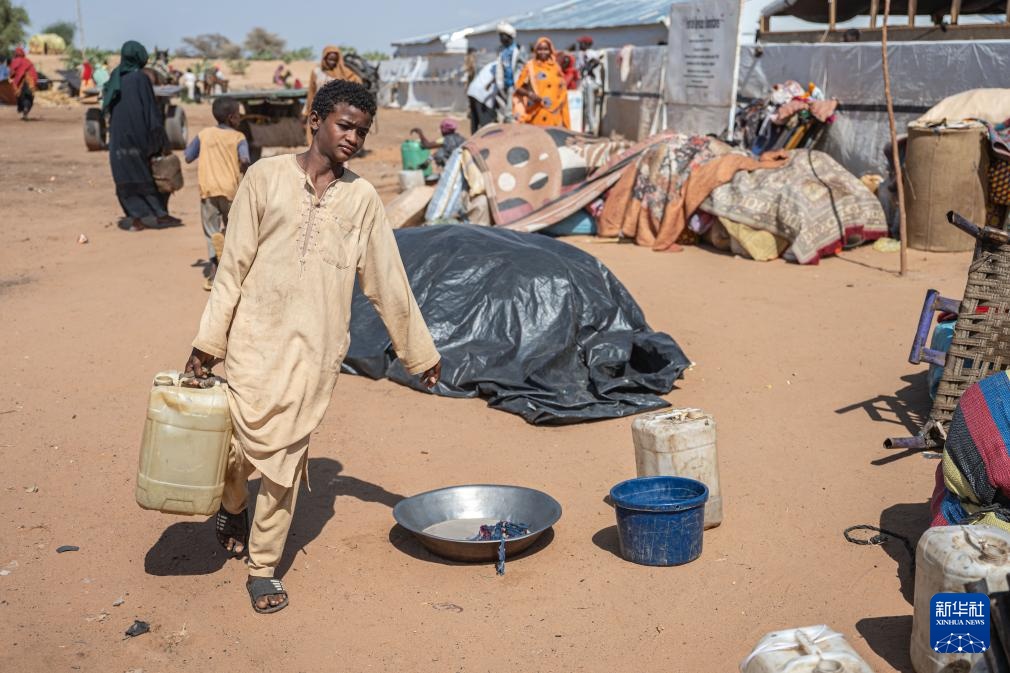 6月24日,苏丹难民在与苏丹西达尔富尔州接壤的乍得东部城镇阿德雷搬运水桶。
