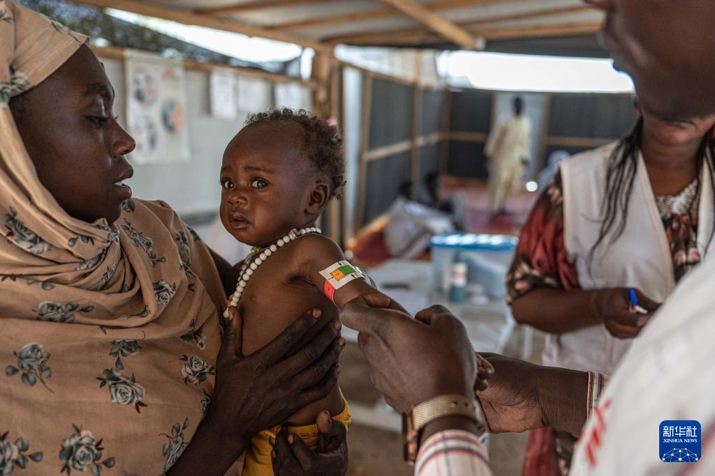 6月25日,在与苏丹西达尔富尔州接壤的乍得东部城镇阿德雷,一名苏丹儿童在一处诊所内接受检查。