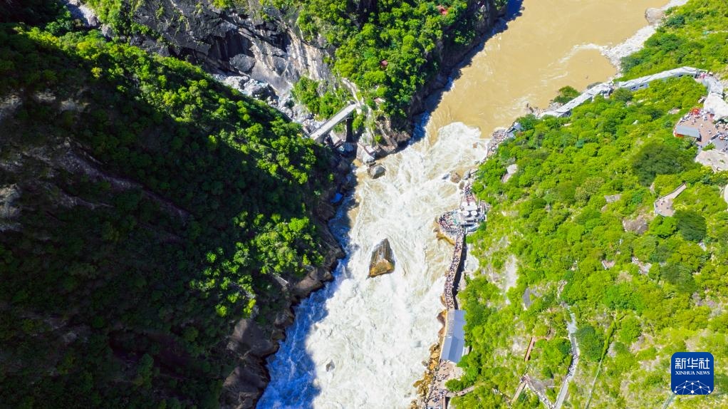空中俯瞰虎跳峡(无人机照片,6月26日摄)。